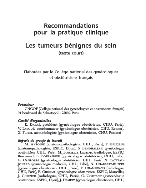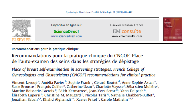 Recommandations pour la pratique clinique du CNGOF. Place de l’auto-examen des seins dans les stratégies de dépistage.par colsein colsein3 février 20263 février 2026