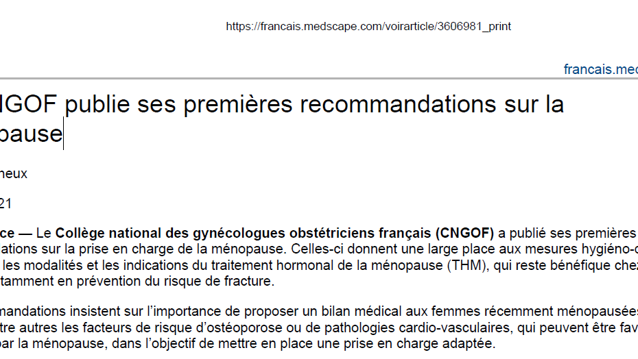 Le CNGOF publie ses premières recommandations sur la ménopausepar colsein colsein3 février 20263 février 2026